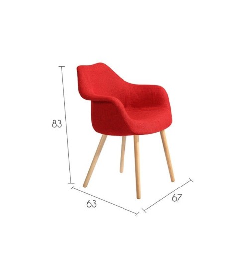 Poids : 10kg Dimensions: - Largeur : 67 cm - Profondeur : 63 cm - Hauteur : 83 cm- - Hauteur d'assise : 50,5 cm - Profondeur d'assise : 47 cm- Epaisseur d'assise : 8 cm - Hauteur des accoudoirs : 67 cm- Hauteur du dossier : 32,5 cmEntretien : Frotter délicatement la partie en tissu de la chaise avec un chiffon doux et un produit de nettoyage pour textile.Materiaux : Siège en tissu polyesterPieds en bois de hêtreMontage : Pour que la chaise soit stable, vérifiez au montage que les pieds avant soient plus longs que les pieds arrière.Informations : Poids maximum supporté : 140 kgInformations colis : 68.5 x 61 x 50.5 cm