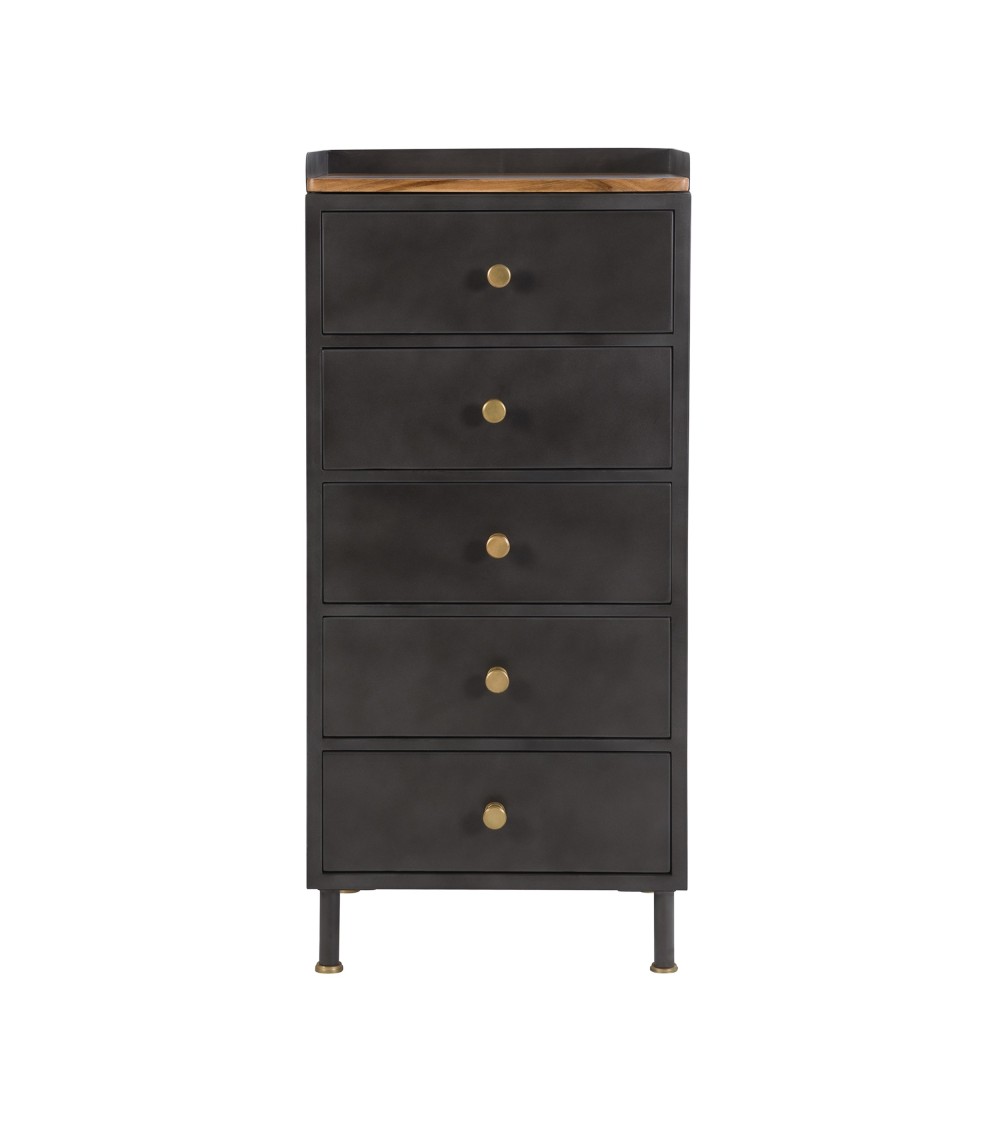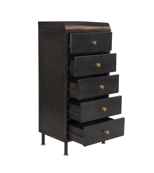 Chiffonnier 5 tiroirs en métal gris métallisé et bois de manguier
