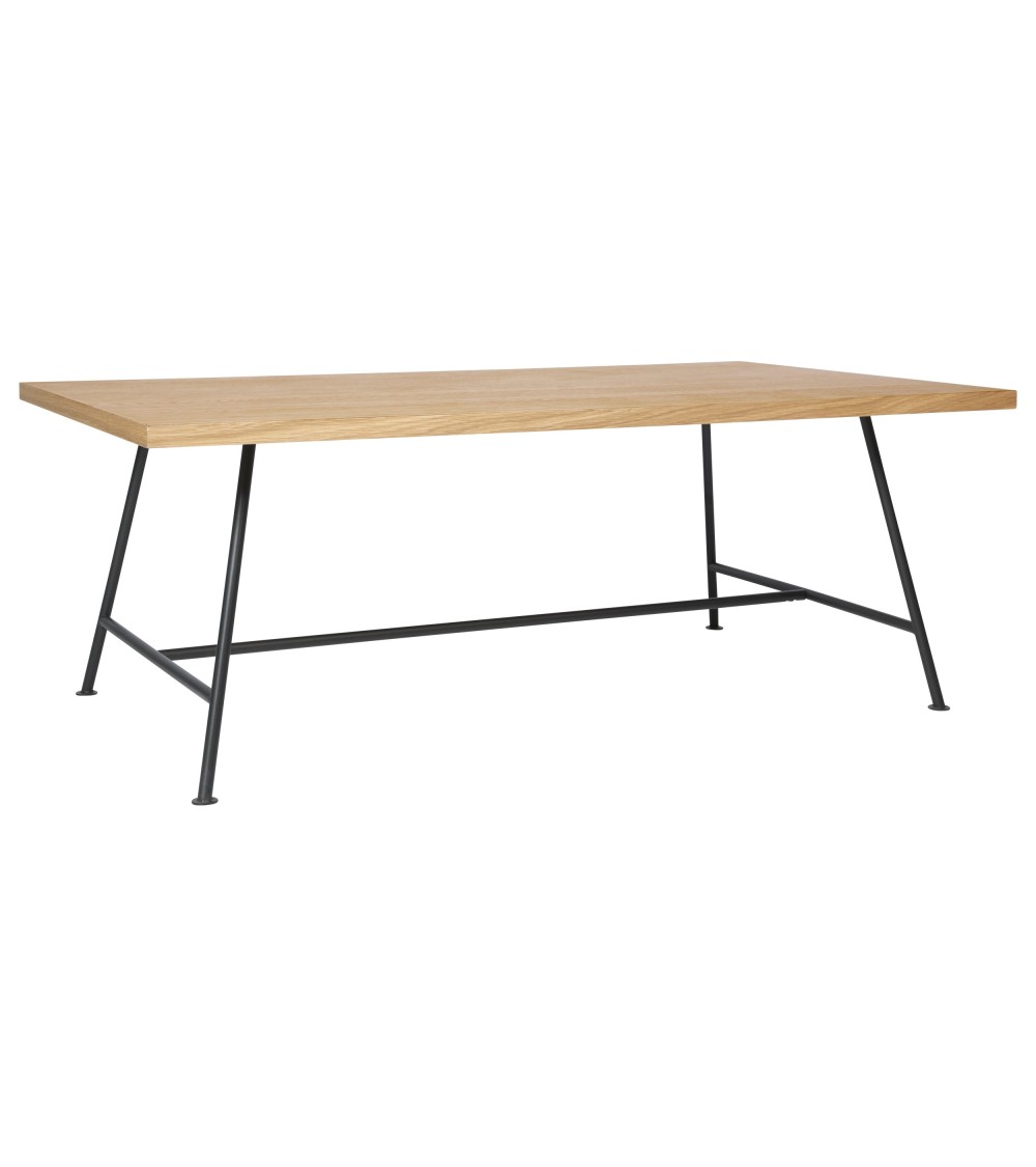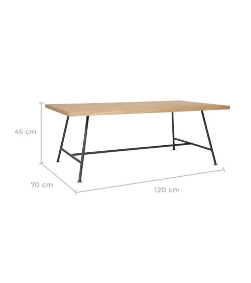 Poids : 19kg Dimensions: - Longueur : 120 cm- Profondeur : 70 cm- Hauteur : 45 cm- Epaisseur du plateau : 3 cmEntretien : Utiliser un chiffon doux avec un peu d'eau savonneuse, rincer et sécher.Materiaux : MDF plaqué bois de chênePieds en métalMontage : A assembler, notice incluseInformations : Poids max : 30 kgInformations colis : 127x80x14 cm