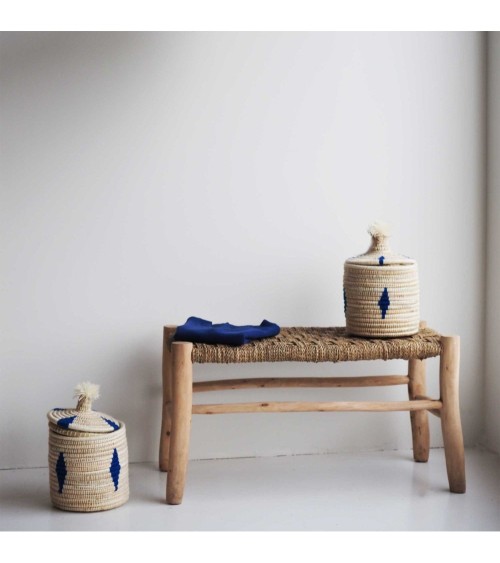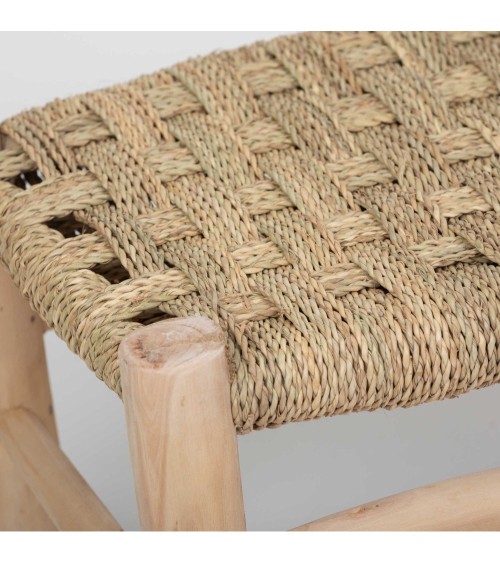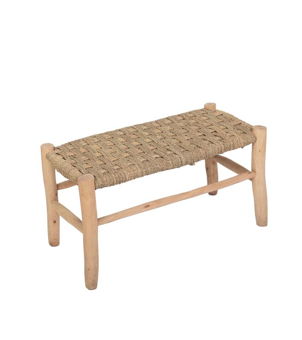 Découvrez notre nouveau banc traditionnel en doum et bois d'eucalyptus, il apportera beaucoup de charme à votre intérieur.Naturel et authentique, il trouvera aussi bien sa place dans votre salon quen bout de lit dans votre chambre. Son tressage croisé lui apporte une assise confortable et résistante.Un banc authentique et naturel qui saura apporter une ambiance bohème chic à votre intérieur. Agrémenter votre déco en y déposant dessus une petite pile de livres ou bien un plaid coloré ! Ce banc existe dans une taille plus petite.La fabrication est artisanale, chaque pièce est unique, les dimensions, la forme du bois et les couleurs peuvent donc légèrement varier.
