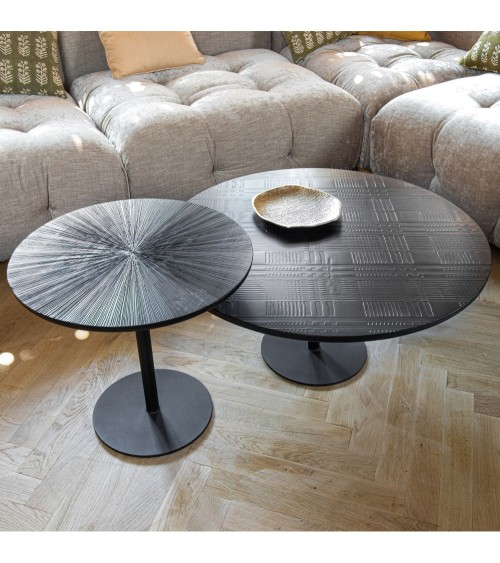 Qui a dit que le design contemporain manquait d'élégance ? Avec la table basse UBU en bois de manguier, adoptez une pièce qui allie modernité et raffinement à la perfection. Son plateau est habillé d'un design texturé qui accentue son originalité. Table basse ronde en bois de manguier Pieds en métal noir Plateau texturé patiné-épaisseur 2cm DIM : 80x80x38.5cm Poids : 17.000 kgsUtiliser un chiffon humide
