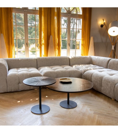 Qui a dit que le design contemporain manquait d'élégance ? Avec le guéridon en bois de manguier, adoptez une pièce qui allie modernité et raffinement à la perfection. Son plateau est habillé d'un design texturé qui accentue son originalité. Guéridon rond en bois de manguier Pieds en métal noir Plateau texturé patiné-épaisseur 2cm Dimensions : ø50 cm x 48 cm Poids : 9.000 kgsUtiliser un chiffon humide
