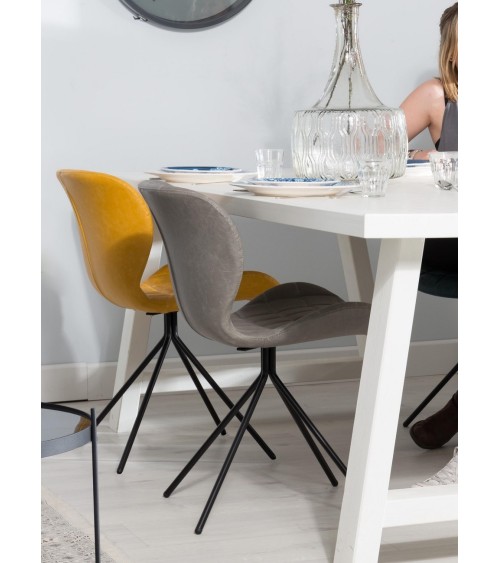 La chaise OMG de Zuiver en simili cuir offre, en plus de son design très actuel, un réel confort grâce a sa forme ergonomique et son dossier légèrement flexible. L'essayer c'est l'adopter!Laissez-vous tenter par des sièges en Skaï, dont l'effet cuir, légèrement vieilli, est bluffant et réchauffe l'espace tout en proposant une assise très confortable et facile d'entretien. Coquille de contre-plaqué avec rembourrage en mousse (100% polyester) Châssis en acier renforcé laqué noir satiné. Qualité exceptionnelle du simili cuir très doux au toucher: l'effet cuir est saisissant. Donnez du peps à votre salle à manger en disposant des chaises confortables de coloris différents autour de votre table. La chaise OMG est disponible en 5 couleurs.