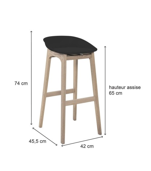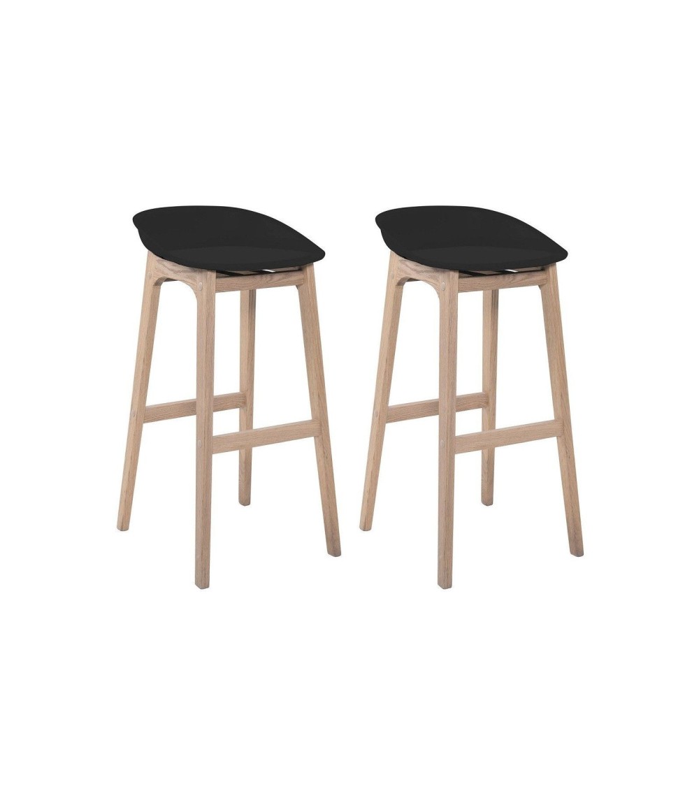 Lot de 2 tabourets de bar assise noire et pieds en chêne 65 cm