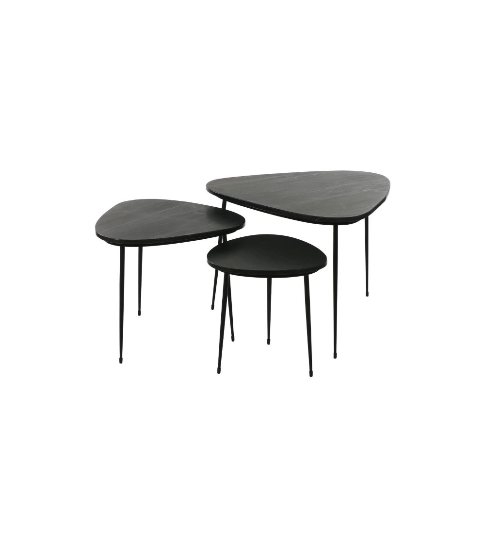 Set de 3 tables d'appoint en marbre noir