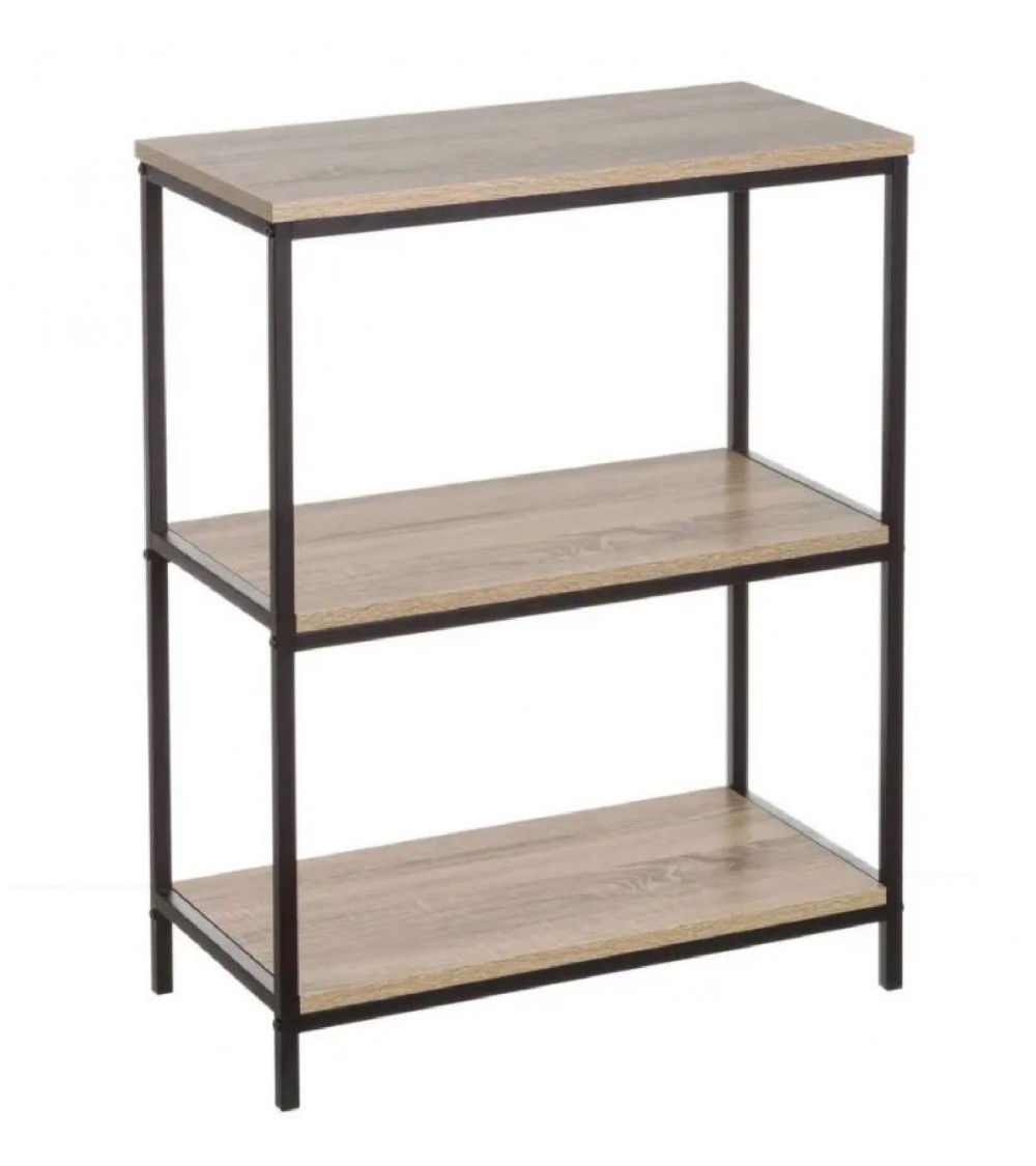 Étagère basse en métal noir et bois. Dimensions: Longueur 60cm x largeur 30cm x Hauteur 76cm (hauteur entre les étagère: 31cm) - Couleur: Noir et Bois - Matière: Métal et Bois MDF