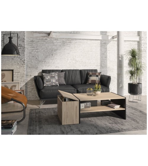 De couleur chêne et noire, cette table basse avec rangement bar Yori est faite pour agrémenter votre salon ou encore votre salle de séjour. C'est un joli meuble conçu à base de panneaux de particules qui séduit par sa solidité, sa résistance et par-dessus-tout, sa beauté.Il possède un coffre de rangement avec abattant pour y stocker tout votre nécessaire à apéro ou encore vos magazine et autres accessoires multimédia. Cette table basse est idéale pour améliorer le rangement de la pièce et vous permet par là de gagner en espace. Vivez dans le confort et passez vos moments de détente en toute tranquillité avec cette superbe table basse à coté.MADE IN FRANCEMatières : Panneaux de particules 100% origine France contrôlée, certifiés durable (certification PEFC) Dimensions : Largeur 107 cm x Hauteur 38 cm x Profondeur 60 cm À monter soi-même. Notice fournie. Garantie 2 ansDepuis 1960, GAMI fabrique des meubles dont la production est basée en France, sur des sites implantés en Vendée. Soutenons notre industrie française !