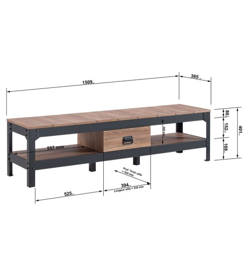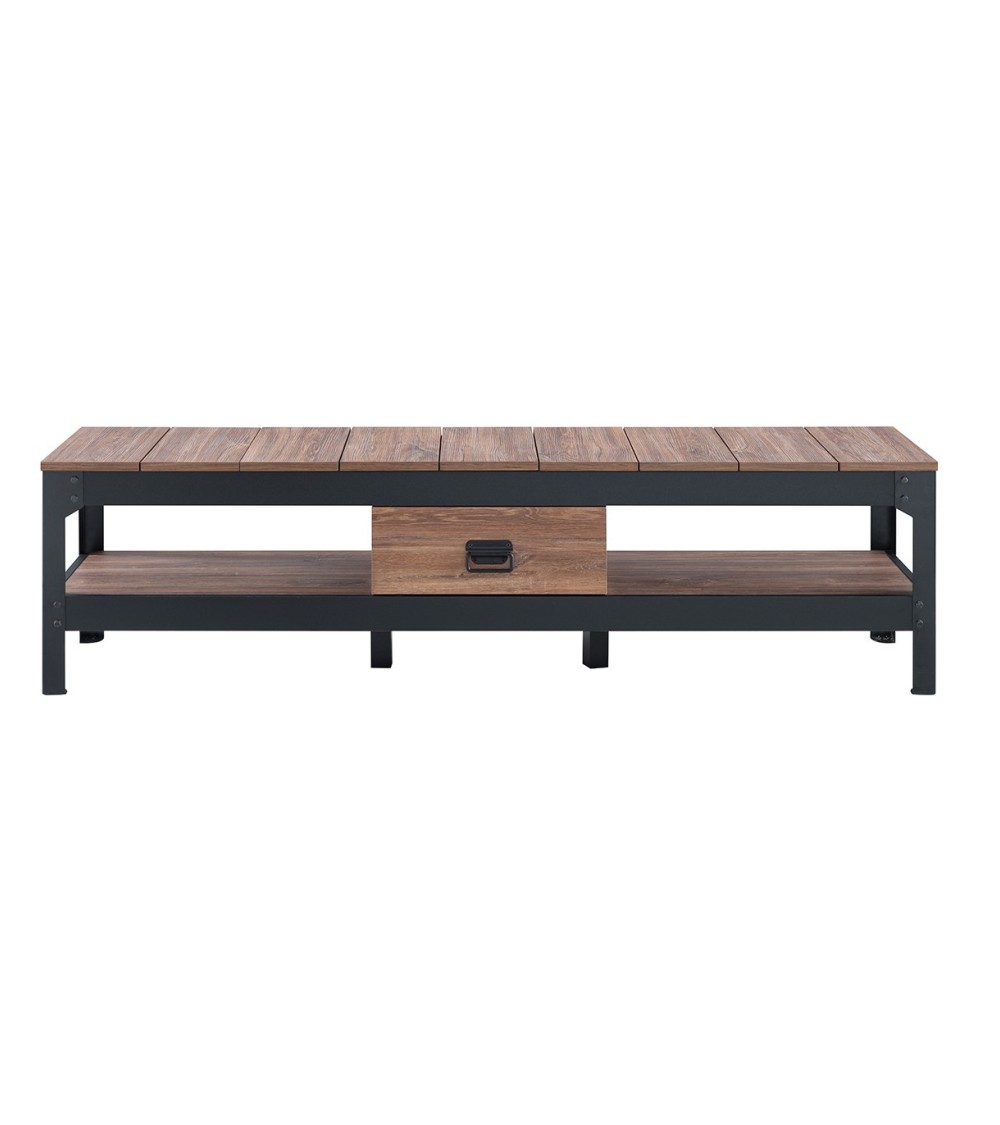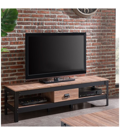Meuble TV avec 2 niches et 1 tiroir décor vieux chêne - L151 cm
