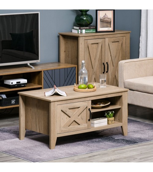Cette jolie table basse style rural chic avec lignes authentiques, façade de tiroir en croisillon dotée d'une poignée métal noir et piètement effilé ajoutera une touche supplémentaire d'élégance à votre intérieur. Si vous recevez des convives, vous pourrez ranger vos affaires grâce à ses nombreux rangements fermés et ouverts.Caractéristiques :- Table basse rectangulaire aspect bois clair avec veinage style rural chic idéal pour ajouter une touche chaleureuse supplémentaire à votre intérieur- Lignes authentiques, façade de tiroir en croisillon dotée d'une poignée métal noir, piètement effilé pour une parfaite intégration à votre salon- Multi-rangements : placard une porte avec étagère, 2 niches ouvertes, plateau- Conception, fabrication de qualité en MDF avec revêtement mélaminé : entretien facile, usage pérenne- Manuel d'instructions illustrées fourni : montage facile et rapideSpécifications :- Couleur : aspect bois clair avec veinage- Matériau principal : MDF- Dim. totales : 100L x 55l x 48H cm- Dim. interne placard : 41,2L x 49,8l x 32,5H cm- Dim. porte placard : 42,4L x 28l cm- Dim. étagère : 41,2L x 51,3l x 15,5H cm- Hauteur pieds : 11 cm- Charge max. recommandée : 50 Kg (au total), 15 Kg (étagères)- Livraison effectuée en un colis- Réf. : 839-042