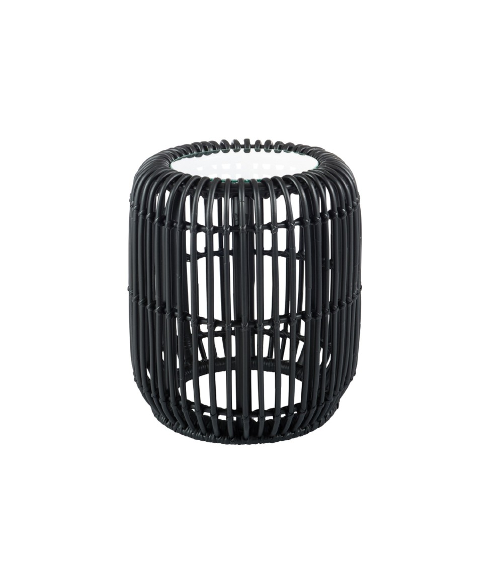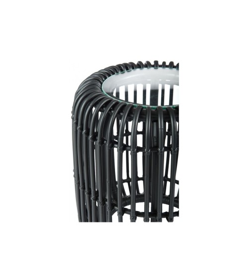 Un bout de canapé ultra tendance qui peut également servir de table de chevet pour votre chambre. Sa couleur noire lui permet de compléter parfaitement une décoration moderne ou contemporaine. Il est fabriqué en rotin et est doté d'un plateau rond en verre. Description technique : Dimensions : L: 38 x P: 38 x H: 41 cmRotin tressé naturel, coloris noir.Plateau en verre trempé.Livré montéPoids : 4 kg....