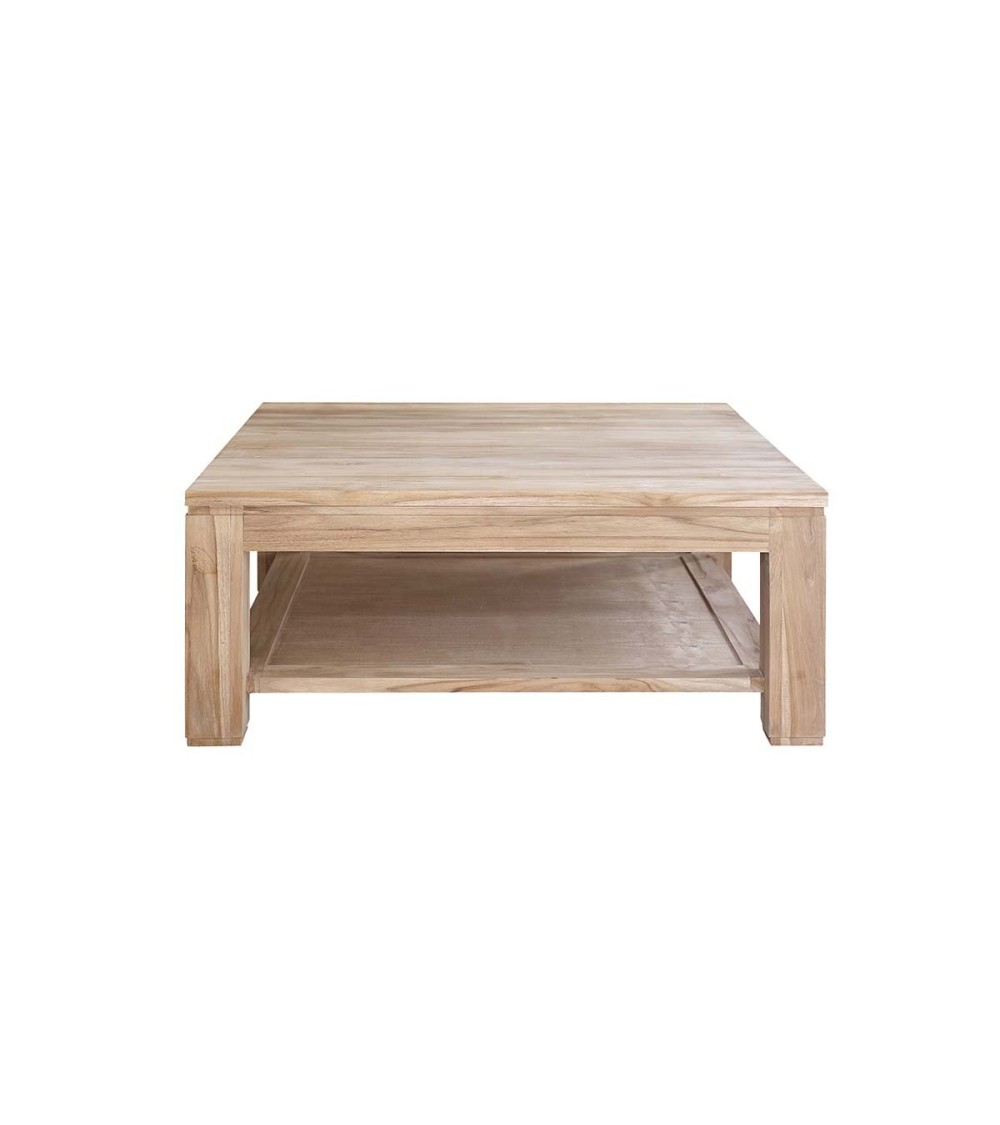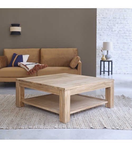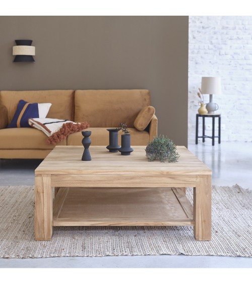 Moderne et chaleureuse, cette table basse en bois de teck dispose d'un double plateau, une solution de rangement non négligeable. Son format carré et sa teinte naturelle s'inviteront facilement dans votre salon. Caractéristiques : Matière : Teck brut de qualité premium - Couleur : Bois naturel - Hauteur : 40 cm - Longueur : 100 cm - Largeur : 100 cm - Poids : 45 kg - Garantie : 2 ans - Montage : Livré monté. Les + : Double plateau Format carré - Epaisseur du plateau: 3 cm.