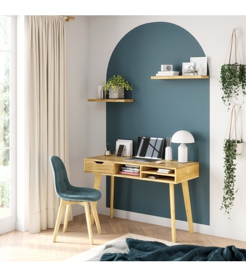 Chaise scandinave bleu/gris pieds bois d'hêtre (lot de 2)