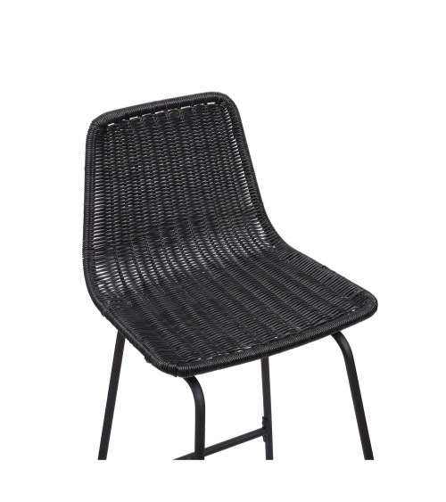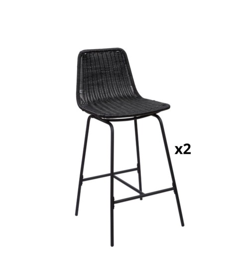 Lot de 2 tabourets de bar en métal et rotin noir 65 cm KUTA