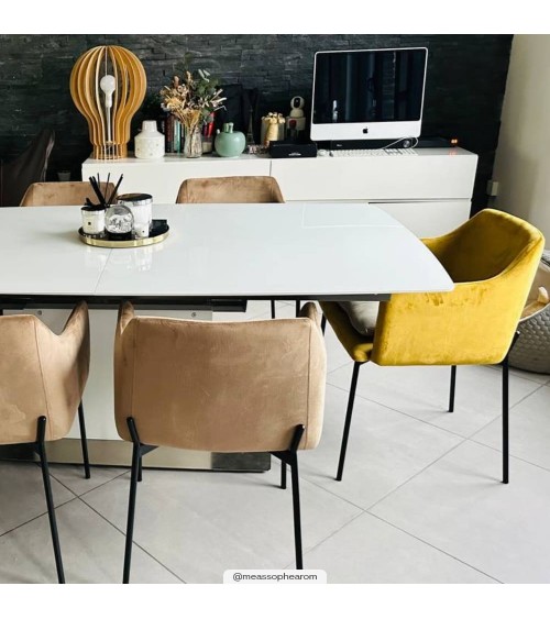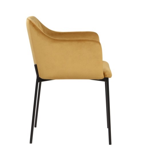Fauteuil jaune moutarde en velours et pieds en métal noir