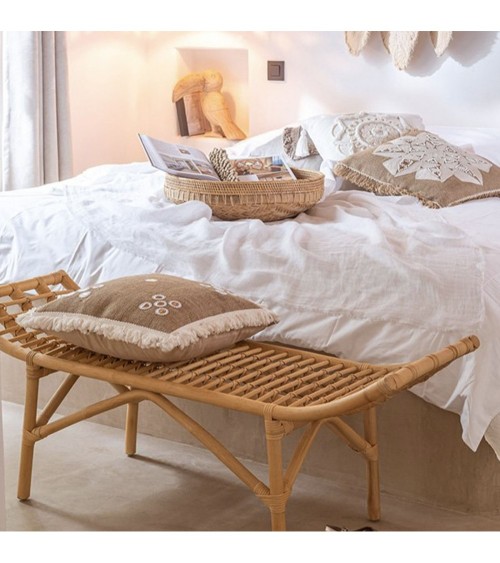 Optez pour ALARIC au style bohème bien prononcé et ajoutez une touche de fantaisie à votre salle à manger scandinave. Vous allez forcémet aimer l'atmosphère zen qui regnera dans votre pièce préférée. ALARIC comporte une assise en rotin naturel. Le tout pour un style à la pointe de la mode. Vous allez forcément apprécier. Nous vous conseillons d'accorder ALARIC à la table à manger 220cm REM pour bénéficier d'une décoration à la pointe de la tendance actuelle. Côté entretien, privilégiez un chiffon humidifié. Dimensions :Hauteur : 47 cmLargeur : 120 cmProfondeur : 40 cmHauteur d'assise : 47 cmBon à savoir :Essence de bois : RotinEntretien : chiffonMatière(s) de l'assise : Bois (rotin)Matière(s) principale(s) : Bois (rotin)Matière(s) des pieds : Bois (rotin)Nombre de personnes : 2 personnesProfondeur d'assise : 40 cmStyle : bohème chic