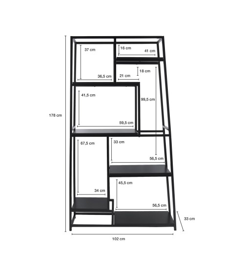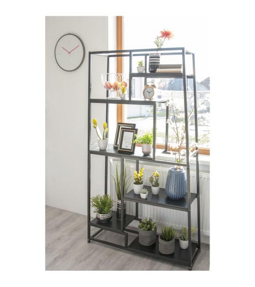 À la recherche d'un meuble combinant solution de rangement et déco? L'étagère Fushion répond idéalement à cette double exigence. Dotée de 7 niches de rangement, elle est parfaite pour déposer des bouquins, mais aussi à mettre en valeur vos objets de déco. Ou pourquoi ne pas y exposer simplement vos plantes vertes ? À travers son esthétique minimaliste, cet élément insuffle une touche design et moderne à votre salle de séjour. L'étagère en métal Fushion trouve véritablement sa place au sein d'un loft style industriel. Le look asymétrique au niveau des cases est visuellement plaisant et chacune d'elle affiche des dimensions différentes.