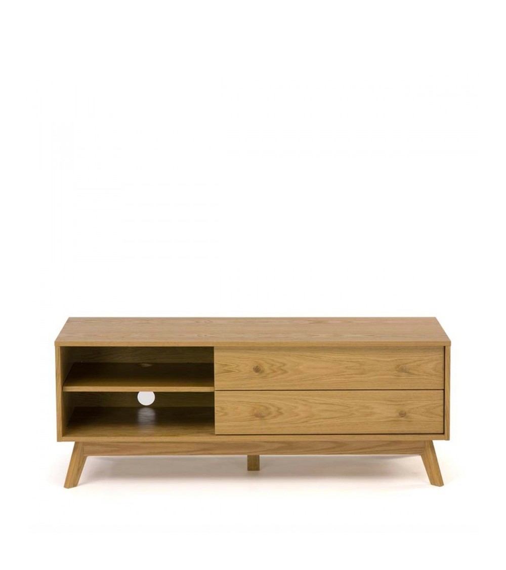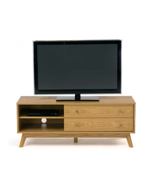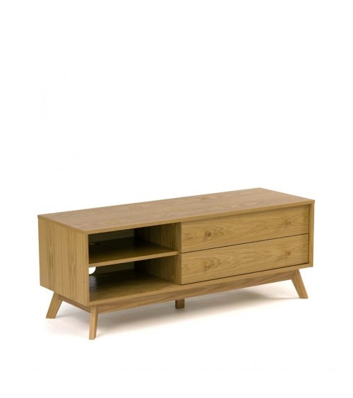 Avec son look en total bois de chêne, son style épuré et ses pieds incurvés, le meuble TV Kensal peut facilement s'intégrer dans une déco design scandinave ou vintage. Il se compose d'une structure principale en chêne plaqué naturel avec deux grandes niches permettant le passage discret des câbles, des périphériques et autres accessoires. Il sert également de meuble de rangement grâce aux deux tiroirs, où l'on peut y ranger CD, DVD, télécommandes Esthétique et pratique, ce meuble TV fera sans aucun doute le bonheur des cinéphiles et des inconditionnels du petit écran ;) Caractéristiques : Marque : WoodmanCouleur : BoisPieds et poignées : Bois de chêne massif Structure : Chêne naturel plaqué Origine : EstonieHauteur des niches : 14cm