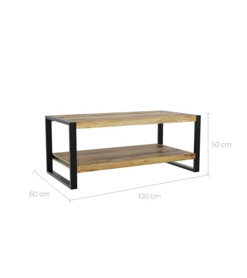 Poids : 26.5kg Dimensions: - Longueur : 120 cm- Profondeur : 60 cm- Hauteur : 50 cm- Epaisseur du plateau : 5 cm- Hauteur des pieds : 12 cmMateriaux : Bois de manguier et métalMontage : A assembler, notice incluseInformations colis : 128 x 68 x 35 cm