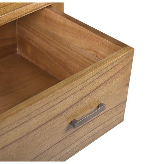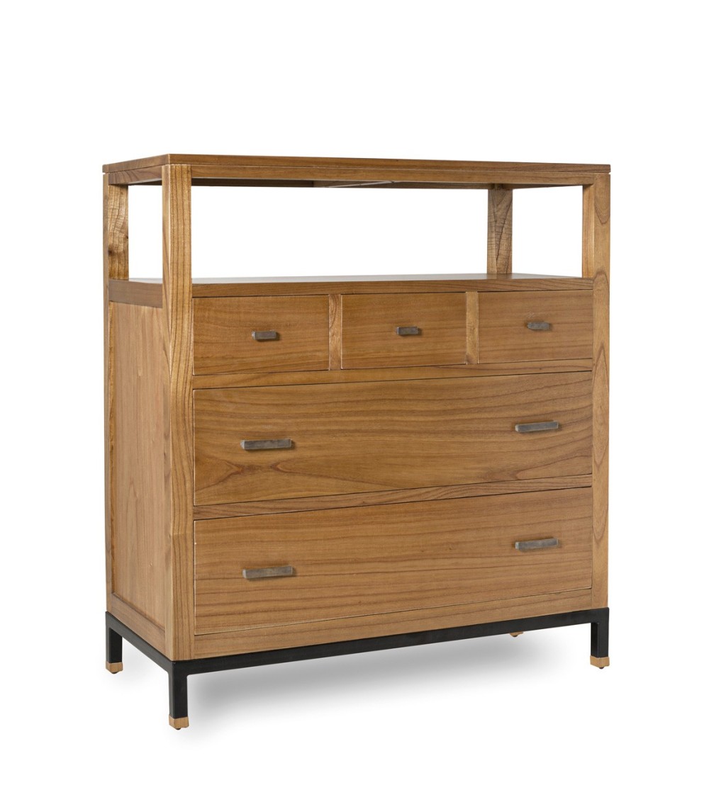 La commode MADHU est fabriquée artisanalement en bois massif de Mindi, pieds en noir et des poignées en bronze. Les 5 espaces de rangement en différentes tailles, 2 x L 91 et 3 x L 28.5 permettent de tout ranger. Aucun montage requis. Découvrez le tiroir secret et gardez vos biens les plus précieux.