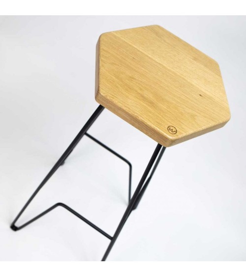 Ce tabouret WOOD offre un design unique et moderne grâce à lassociation du chêne massif et lélégance des pieds métalliques. Son style minimaliste trouvera ainsi parfaitement sa place dans votre intérieur. Des détails soignés :Les quatre pieds en épingle assurent une très bonne stabilité et lacier noir mat apporte un look très contemporain. Lassise hexagonale est confortable et solide, tandis que la gravure laser sublime le veinage du bois. Qualité, durabilité et fabrication française :Les pieds en acier plein de très haute qualité sont forgés sur-mesure dans les Landes, puis thermolaqués pour un effet anti-corrosion, et sont aussi résistant aux chocs. Le tabouret WOOD est disponible en trois tailles : standard (47,5cm), îlot (64cm) et bar (78cm).La version standard peut être utilisée comme assise autour dune table basse, mais aussi comme table de chevet.Les versions bar et îlot sont plus hautes et disposent de repose-pieds. CARACTERISTIQUES :- Made in France- Assise : chêne massif / Pieds : acier plein thermolaqué- Découpe et gravure laser ultra-précises- Hauteur (cm): 47,5 (standard), 64 (îlot), 78 (bar)- Diamètre de lassise : 30 x 33 x 3,2 cm- Poids : 4 kg (standard) 5,7 kg (îlot et bar-)