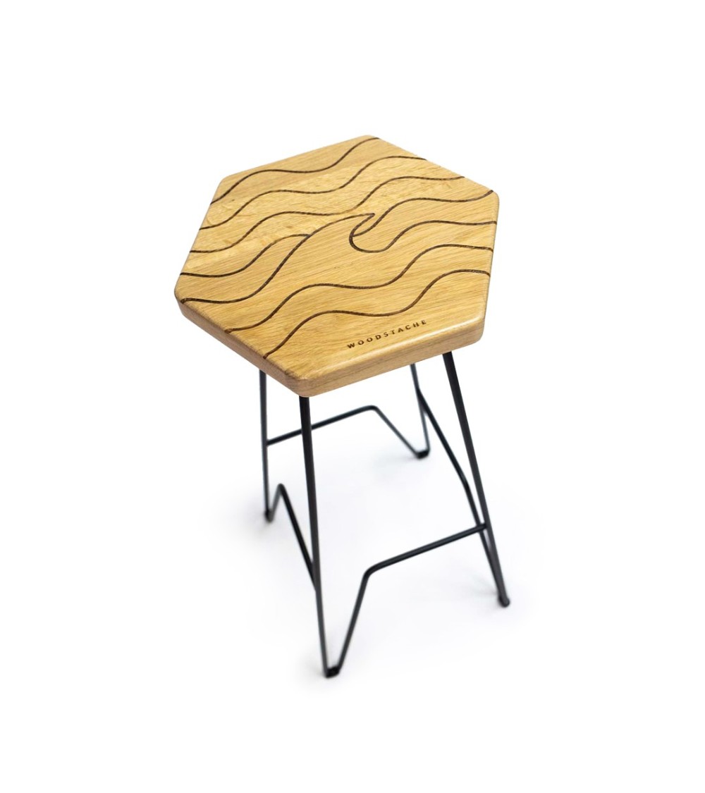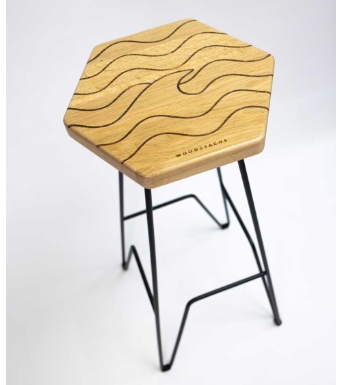 Ce tabouret WAVE offre un design particulièrement unique et moderne et ce grâce à lassociation du chêne massif et lélégance des pieds métalliques. Son style minimaliste trouvera ainsi parfaitement sa place dans votre intérieur. Détails soignés :Les quatre pieds en épingle assurent une très bonne stabilité et lacier noir mat apporte un look très contemporain. Lassise hexagonale est confortable et solide, tandis que la gravure laser sublime le veinage du bois. Qualité, durabilité et fabrication française :Les pieds en acier plein de très haute qualité sont forgés sur-mesure dans les Landes, puis thermolaqués pour un effet anti-corrosion, et sont aussi résistant aux chocs.Le tabouret Wave est disponible en trois tailles : standard (47,5cm), îlot (64cm) et bar (78cm).La version standard peut être utilisée comme assise autour dune table basse, mais aussi comme table de chevet.Les versions bar et îlot, plus hautes, disposent de repose-pieds. CARACTERISTIQUES :- Made in France- Assise : chêne massif / Pieds : acier plein thermolaqué- Découpe et gravure laser ultra-précises- Hauteur (cm): 47,5 (standard), 64 (îlot), 78 (bar)- Diamètre de lassise : 30 x 33 x 3,2 cm- Poids : 4 kg (standard) 5,7 kg (îlot et bar)