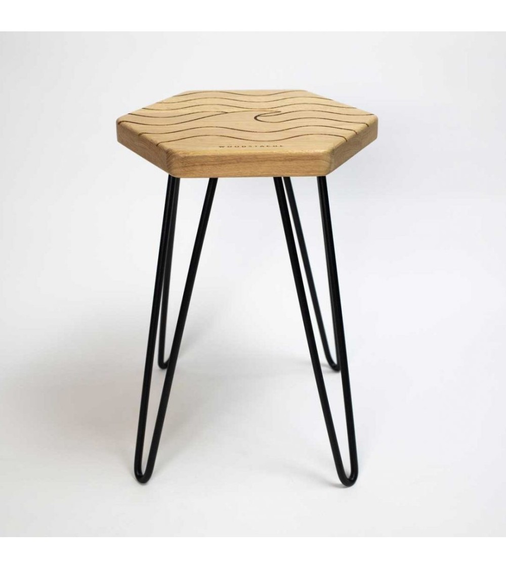 Ce tabouret WAVE offre un design particulièrement unique et moderne et ce grâce à lassociation du chêne massif et lélégance des pieds métalliques. Son style minimaliste trouvera ainsi parfaitement sa place dans votre intérieur. Détails soignés :Les quatre pieds en épingle assurent une très bonne stabilité et lacier noir mat apporte un look très contemporain. Lassise hexagonale est confortable et solide, tandis que la gravure laser sublime le veinage du bois. Qualité, durabilité et fabrication française :Les pieds en acier plein de très haute qualité sont forgés sur-mesure dans les Landes, puis thermolaqués pour un effet anti-corrosion, et sont aussi résistant aux chocs.Le tabouret Wave est disponible en trois tailles : standard (47,5cm), îlot (64cm) et bar (78cm).La version standard peut être utilisée comme assise autour dune table basse, mais aussi comme table de chevet.Les versions bar et îlot, plus hautes, disposent de repose-pieds. CARACTERISTIQUES :- Made in France- Assise : chêne massif / Pieds : acier plein thermolaqué- Découpe et gravure laser ultra-précises- Hauteur (cm): 47,5 (standard), 64 (îlot), 78 (bar)- Diamètre de lassise : 30 x 33 x 3,2 cm- Poids : 4 kg (standard) 5,7 kg (îlot et bar)