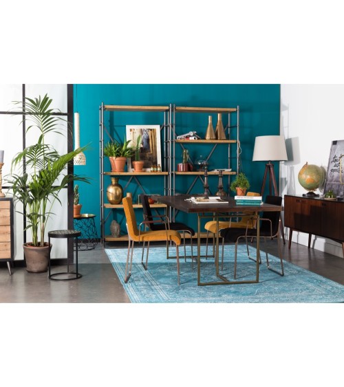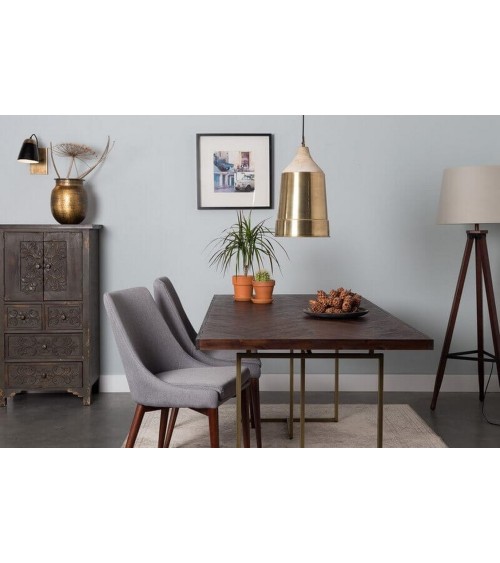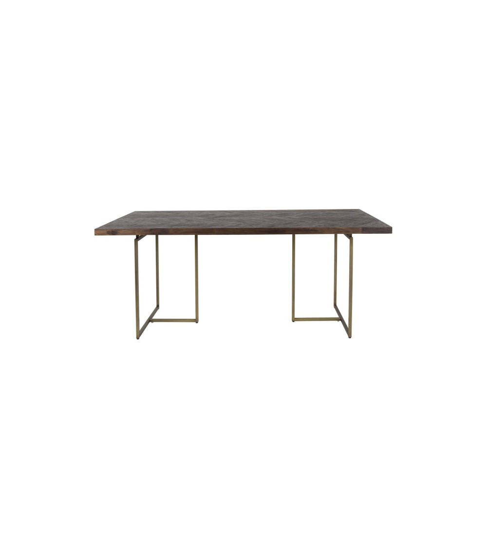 Table à manger chevrons bois et laiton bois foncé 220x90 cm
