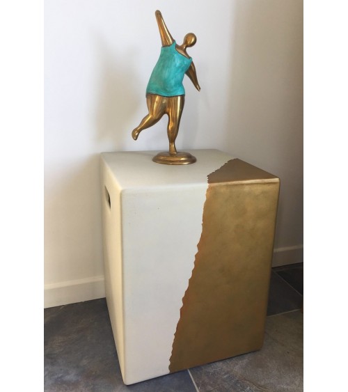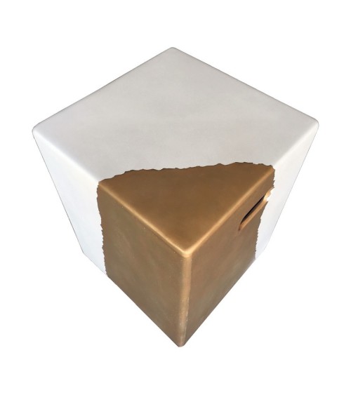 Bout de canapé, utilisable comme table basse d'appoint, table de chevet et bien d'autres usages au gré de vos envies. . . Un élément de décoration unique qui fera fondre les amateurs de mobilier sophistiqué grâce à l'association du ciment blanc et la peinture or mat. Mettez une touche de glamour dans votre intérieur !Ce cube, très original et décoratif, est réalisé en polypierre, son aspect est similaire au béton. L'aspect est, de ce fait pas ''blanc/blanc''. La finition est lisse et résistante aux chocs. Afin de faciliter son déplacement, le cube est pourvu de 2 encoches rectangulaires permettant d'y glisser les doigts. Le mobilier en polypierre: une valeur sûre pour une décoration épurée et design. Dimensions du cube: 35 x 35 x 47 cmPoids: 16 kgCouleur: Blanc crême/orMatériau: alliage de ciment et de résine