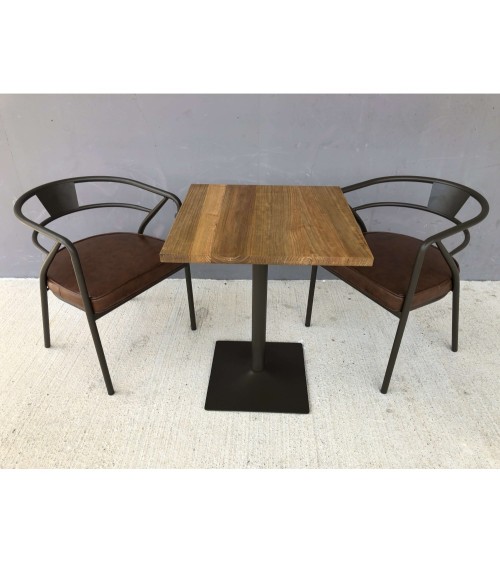 Table de repas carrée idéale pour petits espaces ou les professionnels de la restauration. Mobilier robuste et moderne avec de très belles finitions. Son plateau est en bois massif de 3 cm (Orme) traité. Son pied est en acier thermolaqué de couleur gris foncé. Table parfaite pour prendre un petit déjeuner dans la cuisine ou à utiliser comme table supplémentaire d'appoint lors de repas de famille ou entre amis.