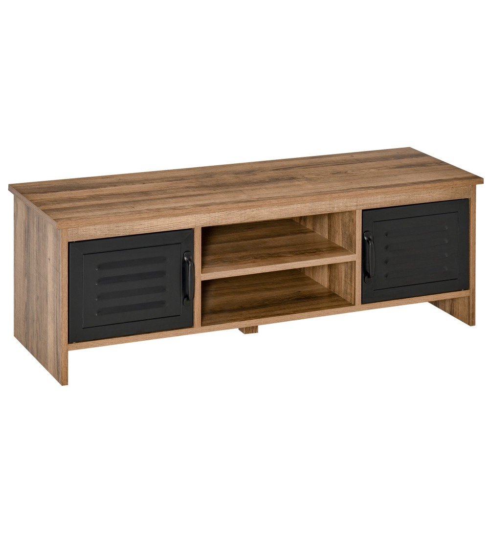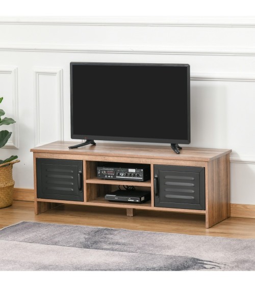 Meuble TV design industriel 2 placards 2 niches aspect bois métal noir
