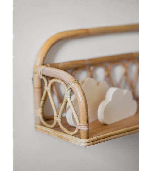 Cette étagère murale (60 cm) en rotin et bois naturels apportera une touche vintage à votre intérieur. A compléter avec les autres meubles de la gamme JUNE pour une ambiance au top! Fabrication Artisanale Dimensions produit: 60(l) x 20(p) x 25(h) cm Livraison à domicile offerte en France (pied d'immeuble)