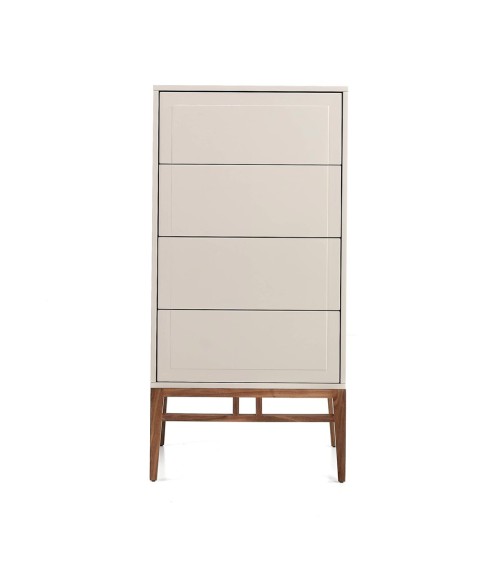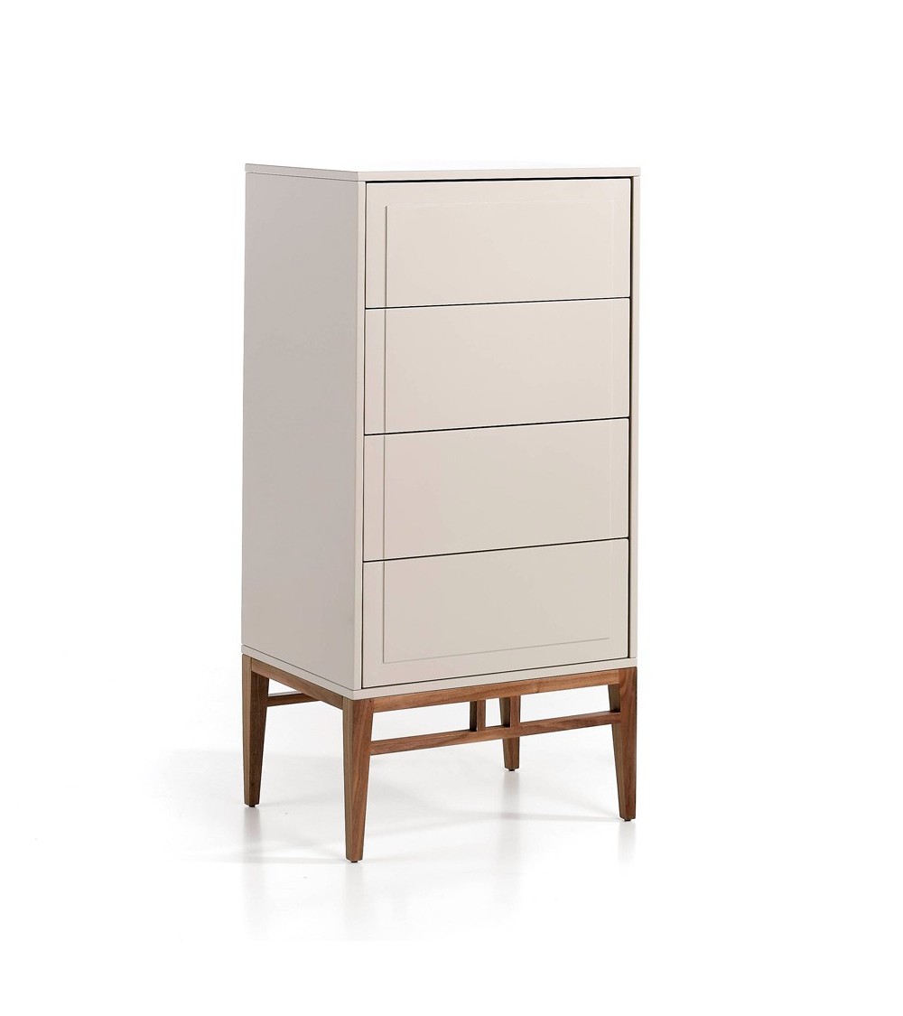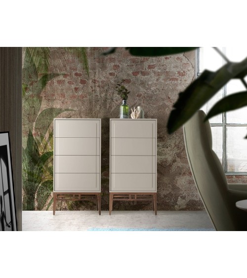 Ángel Cerdá est un groupe de tradition familiale avec plus de 125 ans dhistoire, sur 4 générations, dans le secteur du meuble. Chiffonnier gris et noyer modèle 7036 Angel Cerdá S.L. Chiffonnier au design moderne en DM laqué en RAL7044 Niebla Brillo, combiné avec une structure originale de pieds en bois plaqué noyer naturel de 0,5 mm d'épaisseur. Un chiffonnier de style élégant et sophistiqué parfait pour ajouter la touche de tendance et de style que vous recherchez dans votre chambre, ainsi que pour tout garder en ordre grâce à son espace de rangement à quatre tiroirs avec système de poussée et fermeture amortie. Un auxiliaire aux lignes droites, pratique et fonctionnel, ainsi qu'un design pour votre pièce. STYLE: Ce chiffonnier original apportera la touche moderne que vous recherchez dans votre chambre. La combinaison de la laque grise et du bois de couleur noyer dans sa structure est parfaite pour créer une atmosphère chaleureuse et élégante. MULTISTANCY: Polyvalent et fonctionnel, son design lui permet de s'intégrer dans tout type de chambre, devenant ainsi un élément décoratif clé de la pièce. QUALITÉ: Tous nos chiffonniers sont fabriqués avec des matériaux de la plus haute qualité, garantissant un mobilier durable et fonctionnel. DÉCORATION ET CONFORT: Le design de ce chiffonnier aux lignes droites et simples deviendra l'option parfaite si vous recherchez l'élégance et la simplicité, ainsi qu'une plus grande sensation d'espace. FONCTIONNALITÉ: Le caractère avant-gardiste de ce chiffonnier, ainsi que son grand espace de rangement avec quatre tiroirs avec système d'ouverture par poussoir et fermeture en douceur, offre de l'espace et une sensation de légèreté à l'espace, ainsi que la plus grande fonctionnalité pour que tout garder en ordre.