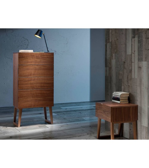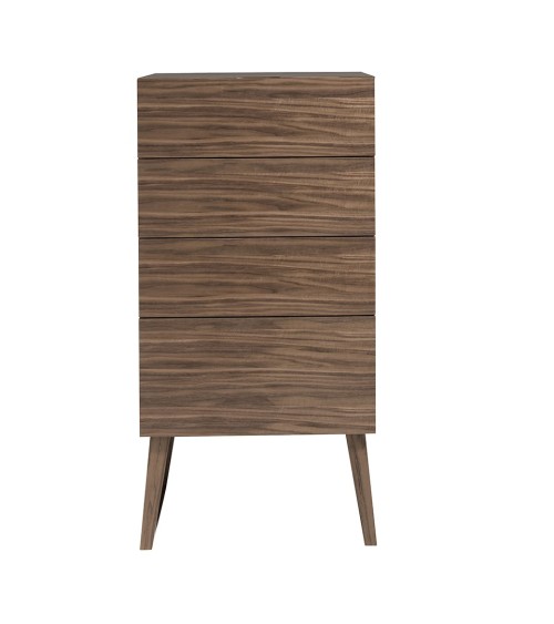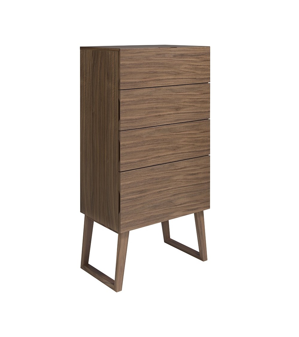 Produit à usages professionnels et particuliers. Chiffonnier en bois de noyer modèle 7024 Angel Cerdá S.L. Chiffonnier avec un design moderne et une structure originale de pieds en bois plaqué en noyer naturel de 0,5 mm d'épaisseur. Un chiffonnier de style élégant et sophistiqué parfait pour apporter la touche de chaleur et de style que vous recherchez dans votre chambre, ainsi que pour tout garder en ordre grâce à son espace de rangement à quatre tiroirs avec système de fermeture amortie. Un auxiliaire aux lignes droites, pratique et fonctionnel, ainsi qu'un design pour votre pièce. STYLE: Les lignes droites de ce chiffonnier ajouteront la touche moderne que vous recherchez dans votre chambre. Le bois de noyer créera cette atmosphère idéale, chaleureuse et pleine de style. MULTI USAGE: Polyvalent et fonctionnel, son design lui permet de s'intégrer dans tout type de chambre, devenant ainsi un élément décoratif clé de la pièce. DÉCORATION ET CONFORT: Le design original de ce chiffonnier en noyer est l'option parfaite si vous recherchez l'élégance et la simplicité, ainsi qu'une plus grande sensation de chaleur. FONCTIONNALITÉ: Le style minimaliste et simple de ce chiffonnier, ainsi que son grand espace de rangement avec trois tiroirs simples et un double avec fermeture amortie, vous offriront la plus grande fonctionnalité pour que vous gardiez tout en ordre et à sa place. GAMME PROFESSIONNELLE : A destination des architectes d'interieur, Bureaux, Commerces et événementiel, Hôtellerie, Restauration.