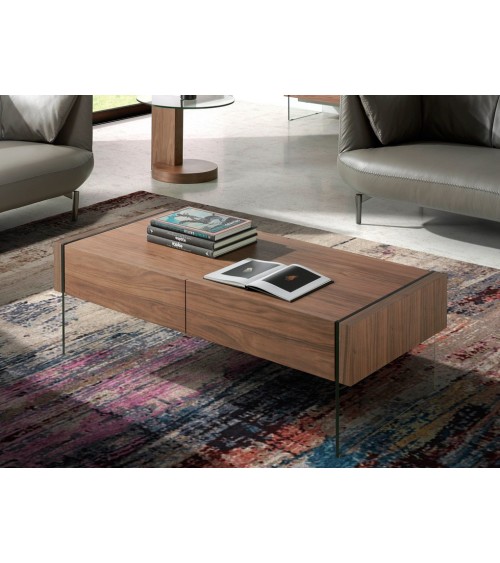 Ángel Cerdá est un groupe de tradition familiale avec plus de 125 ans dhistoire, sur 4 générations, dans le secteur du meuble. Table basse d'appoint en verre modèle 2050 Angel Cerdá S.L. Table basse au design moderne avec plateau en bois plaqué noyer naturel de 0,5 mm d'épaisseur, avec un design élégant et original de pieds latéraux en verre trempé de 12 mm et de bords polis. Grâce à ses deux tiroirs avec système de fermeture en douceur, vous pouvez tout garder en ordre. Cette table d'appoint de notre nouvelle collection apportera chaleur et style à votre pièce, ainsi qu'une sensation de table flottante grâce au beau design de ses pieds en verre. STYLE: Cette table basse apportera la touche moderne et différente que vous recherchez dans votre maison. Une pièce exclusive idéale à combiner avec les dernières tendances de la décoration. MULTIESTANCE: Sa conception polyvalente lui permet de s'intégrer dans n'importe quelle pièce. QUALITÉ: Toutes nos tables basses sont fabriquées avec des matériaux de la plus haute qualité, garantissant un mobilier durable et fonctionnel. DÉCORATION ET CONFORT: La transparence du verre des pieds et du bois de noyer, apporte luminosité et chaleur à l'environnement, résultant en un espace cosy et moderne. DIMENSIONS: Grâce à la sensation de légèreté des pieds de cette table, cette table basse est parfaite pour créer des environnements spacieux et lumineux.