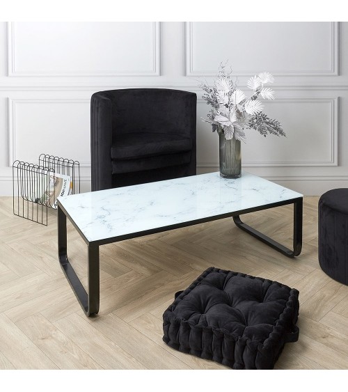 Vos instants de convivialité ne seront que meilleurs autour de cette belle table basse en verre Marble à l'esprit contemporain.Cette table basse esthétique avec structure en métal et plateau en verre marbré viendra parfaire l'agencement de vos salon.Description de la table basse en verre Marble :Composition : métal, verreDimensions : L. 105 x P. 55 x H. 32 cmPoids : 12 kgA monter soi-même