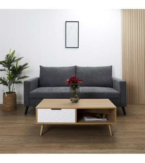 Cette très stylée table basse Sven à l'esprit scandinave avec un tiroir aura sa place dans un intérieur moderne, nordique, voir vintage.Cette table basse esthétique viendra parfaire l'agencement de vos salles de vie.Description de la table basse Sven :Composition : bois, contre-plaquéDimensions : L. 100 x P. 50 x H. 38 cmPoids : 18 kgA monter soi-même