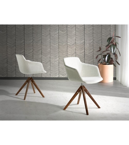 Produit à usages professionnels et particuliers. Chaise de table à manger pivotante tissu beige modèle 4059 Angel Cerdá S.L. Chaise pivotante au design moderne avec accoudoirs rembourrés en tissu beige. Une chaise de style tendance et intemporelle avec des pieds en frêne peint en noyer qui deviendra un incontournable de votre table à manger. Son siège en mousse polyuréthane de 25 kg / m3 et son design enveloppant ajouteront ce style unique et personnel à l'espace, tout en offrant le plus grand confort. STYLE: La combinaison du tissu beige avec le bois de noyer des pieds, en fait une chaise pivotante parfaite pour apporter chaleur et élégance à l'espace. MULTI USAGE: Son caractère polyvalent et fonctionnel en fait une chaise idéale pour tout type de salon, table à manger ou meuble-lavabo. DÉCORATION: Grâce à son design original et à la structure robuste des pieds rotatifs, vous obtiendrez la touche personnelle et minimaliste que vous recherchez pour votre table à manger, ainsi que le plus haut niveau de qualité et de confort pour votre maison. CONFORT: La taille de son assise et son rembourrage en mousse polyuréthane 25kg / m3 vous permettra d'avoir un maximum de confort, sans négliger les dernières tendances en matière de décoration. GAMME PROFESSIONNELLE : A destination des architectes d'interieur, Bureaux, Commerces et événementiel, Hôtellerie, Restauration.