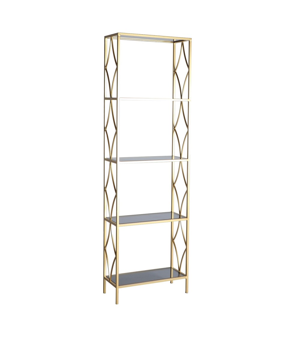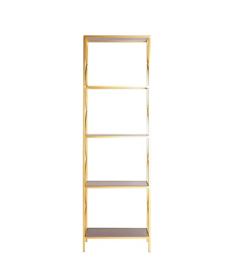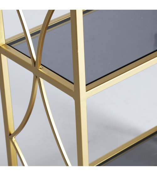Cette étagère de Lastdeco associe le fer doré et le verre pour donner un effet lumineux et ample à la pièce. Elle est formée par quatre étagères soutenues par une structure simple et aérée de style Art déco. Sa taille est de 56x25,5x183 cm.