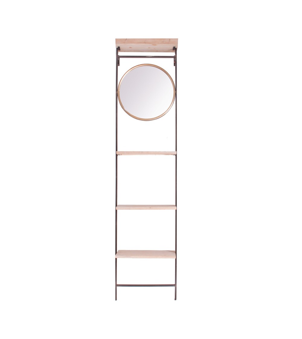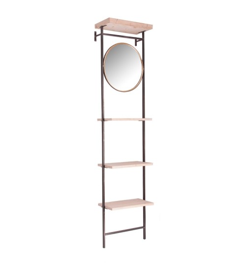 Attrayante et fonctionnelle, létagère Wholen sinscrit clairement dans le style industriel. Elle est fabriquée en bois de sapin associée avec du bois de sapin et des miroirs. Elle est composée de 3 étages et dun petit plateau en bois en haut de la structure. De plus, elle soutient un miroir circulaire de 40 cm de diamètre. Les dimensions de cet article et son style novateur sont parfaits pour linstaller dans l'entrée de la maison. Sa taille est de 46x24x195 cm.