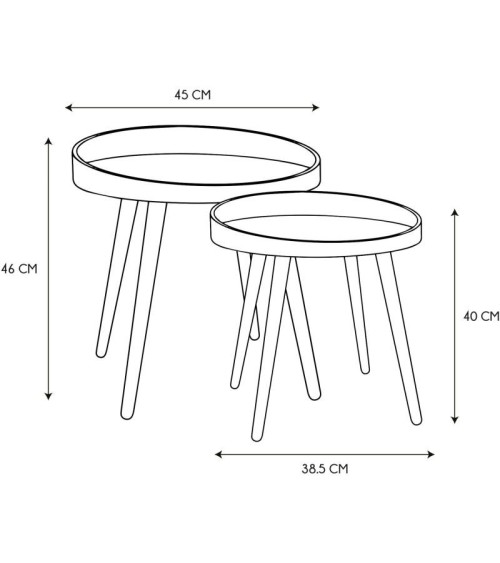Aspect : Matériau principal : FerMatériaux secondaires : MDF Rotin Dimensions : Diamètre (en cm) : 45Hauteur (en cm) : 46Autres caractéristiques : Composition : 2 tables gigognesPoids (en kg) : 4,65 Tables gigognes plateau en rotin Reed (Lot de 2)
