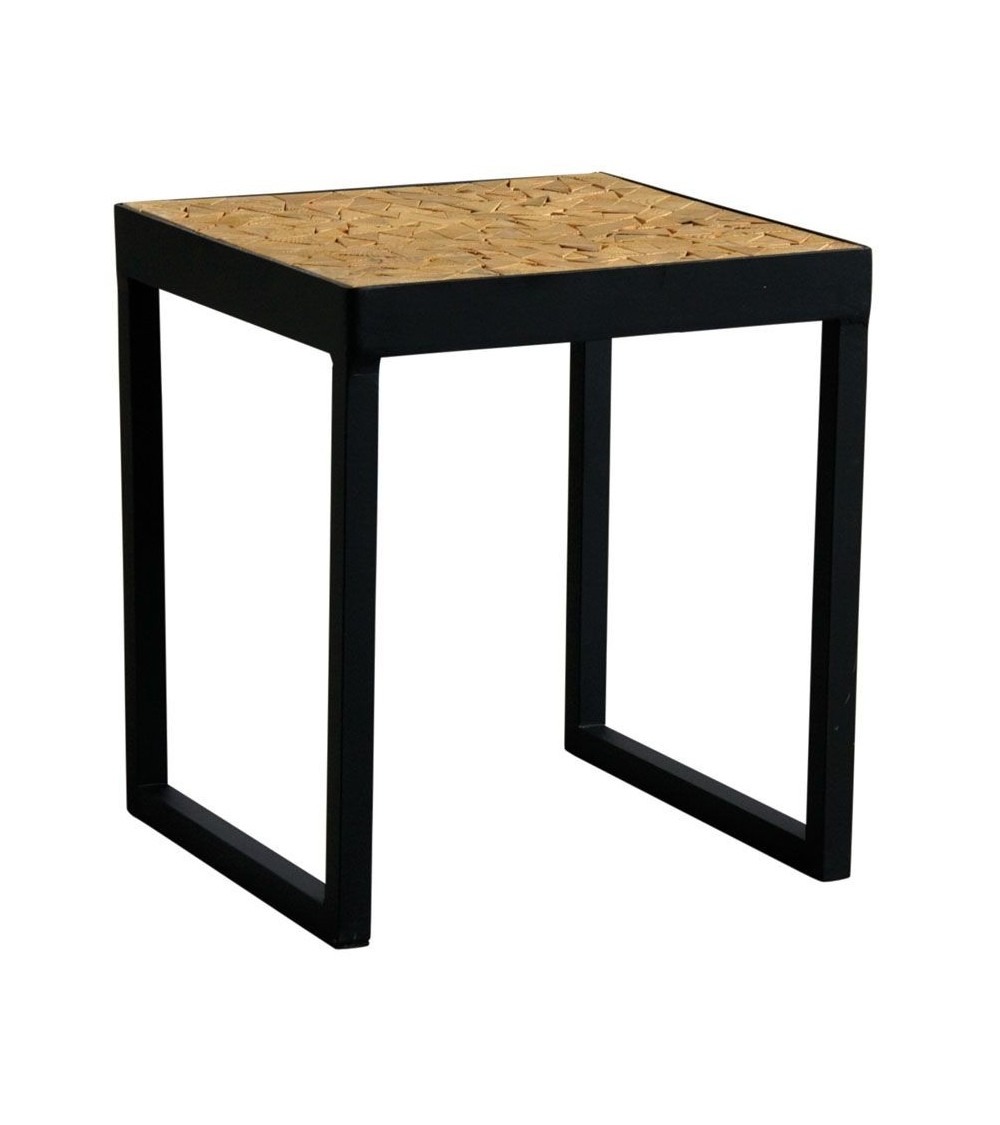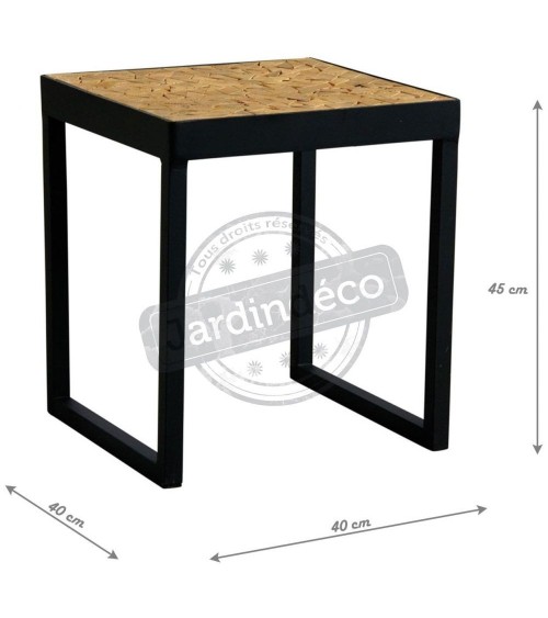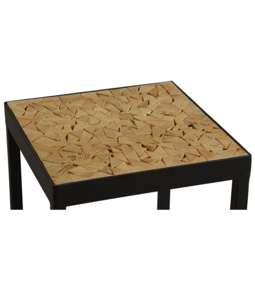 Aspect : Matériau principal : MétalMatériaux secondaires : BoisDimensions : Hauteur (en cm) : 45,00Longueur (en cm) : 40,00Profondeur (en cm) : 40,00Autres caractéristiques : Livré monté : Oui Table basse en métalPlateau design mosaïque en sapinLivrée montée Moderne, industrielle et naturelleLongueur 40 cm , Largeur 40 cm , Hauteur 45 cm