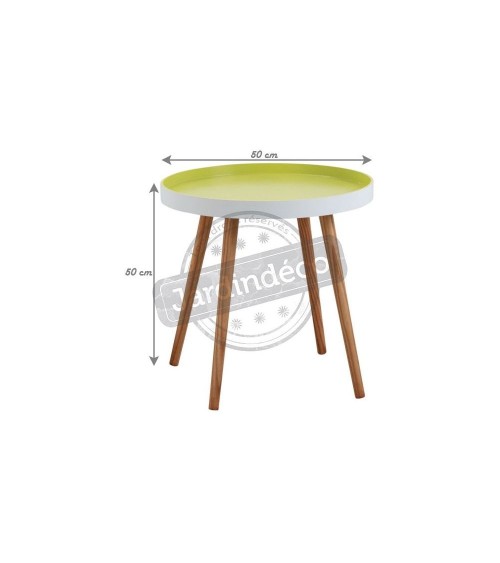 Aspect : Coloris : Vert anis Blanc Matériau principal : BoisMatériaux secondaires : MDF laquéDimensions : Diamètre (en cm) : 50,00Hauteur (en cm) : 50,00Autres caractéristiques : Livré en kit : OuiPoids (en kg) : 4,00 Table d'appoint ronde en bois et MDF laqué vert anis et blanc.