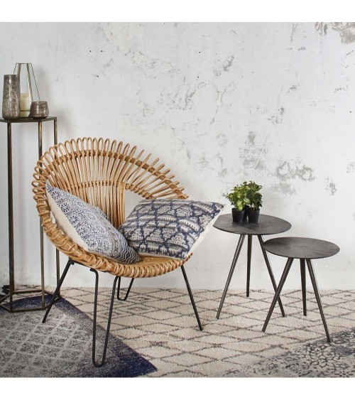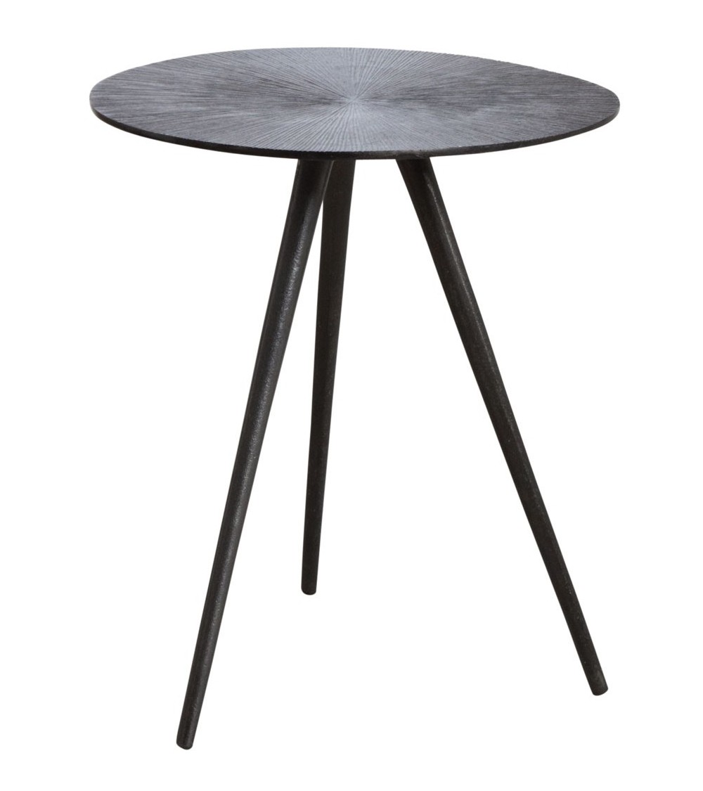 Aspect : Coloris : NoirMatériau principal : Métal zinc antiqueDimensions : Diamètre (en cm) : 40,00Hauteur (en cm) : 47,00Autres caractéristiques : A monter : Oui Table ronde en métal zinc antique, 3 pieds