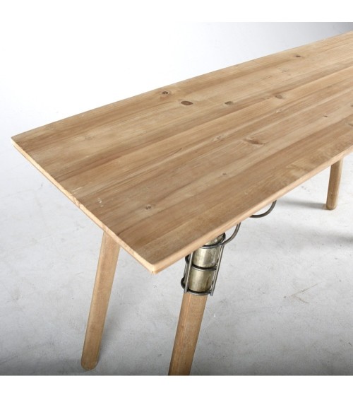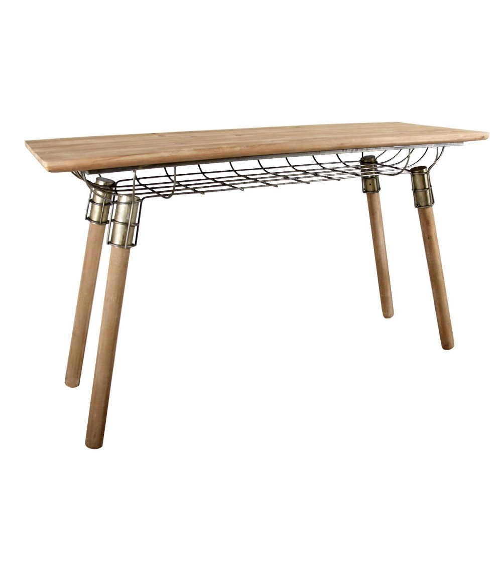 Aspect : Matériau principal : PinMatériaux secondaires : MétalDimensions : Hauteur (en cm) : 85,00Longueur (en cm) : 145,00Profondeur (en cm) : 50,00Autres caractéristiques : Livré monté : NonPoids (en kg) : 16,50 Dans le salon, en déco ou comme bureau, cette console en bois et métal est parfaite pour votre intérieur.Fabrication en pin et métalEn guise de bureau ou en consoleCasier de rangement sous le plateauÀ monter Longueur 145 cm , Largeur 50 cm , Hauteur 84,5 cm