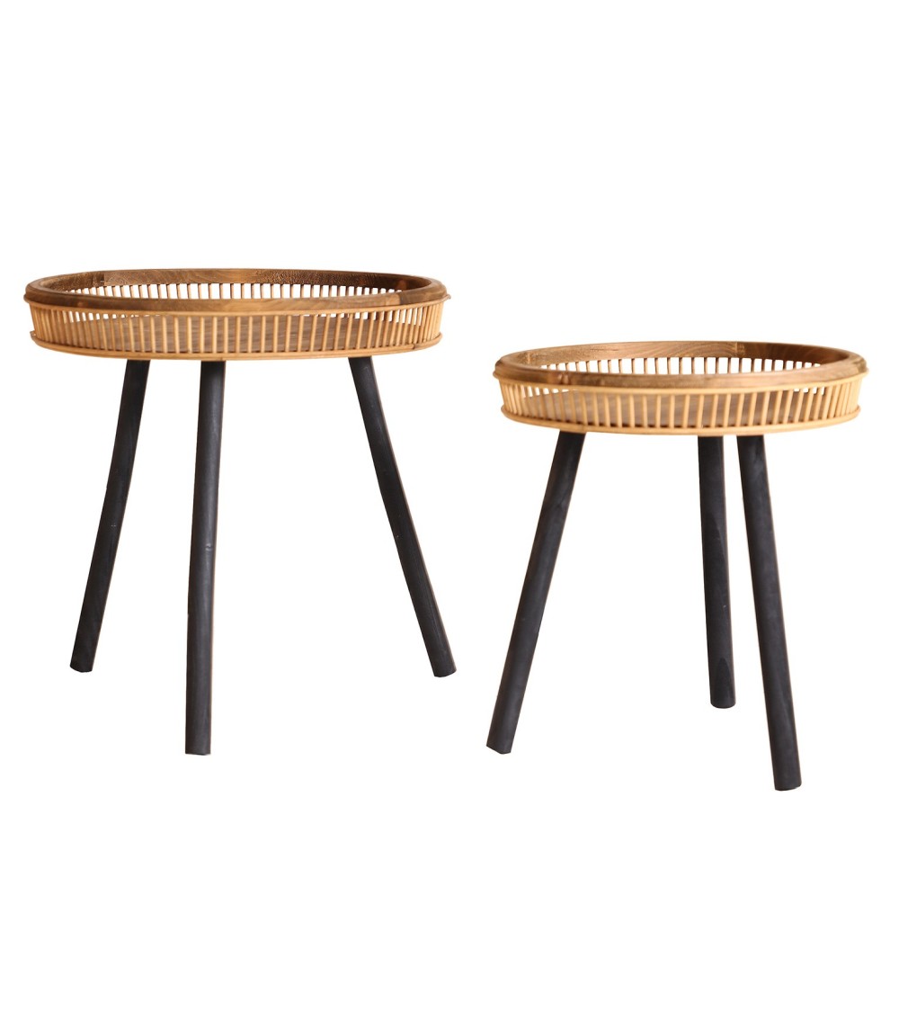 Les fibres naturelles constituent un matériau idéal pour apporter un style chaleureux et exotique à nimporte quelle terrasse. Lensemble de trois tables dappoint Lastdeco associe la chaleur du bambou à un style épuré, idéal pour les espaces les plus accueillants. Leur taille est de 50x50x51 cm.