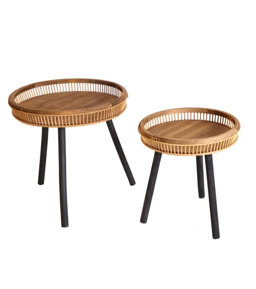 Table d'appoint en bambou en noir et marron 50x50x51 / 40x40x44
