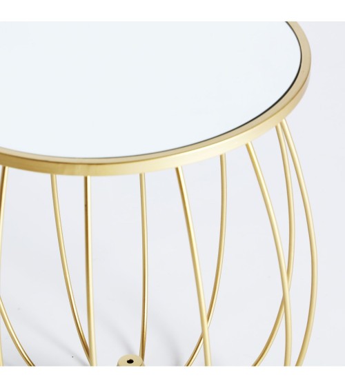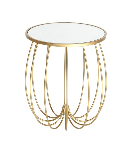 Élégante et épurée, la table d'appoint Belista de Lastdeco est composée dune structure en fer doré assortie à un plateau en miroir. C'est un élément de style Art déco qui ne passera pas inaperçu dans la pièce où il se trouvera. Sa taille est de 43x43x52 cm.
