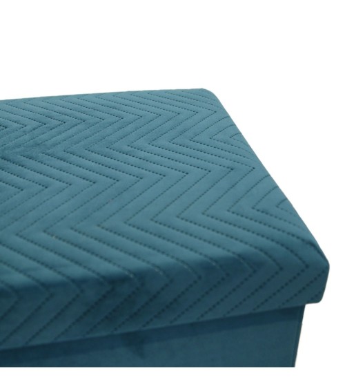 Aspect : Finitions : VeloursMatériau principal : PolyesterMatériaux secondaires : MDFDimensions : Hauteur (en cm) : 38Longueur (en cm) : 76Profondeur (en cm) : 38Autres caractéristiques : Informations complémentaires : Pliable Double fonction coffre et banc Couvercle effet relief motif Zig zag Poids (en kg) : 5,40Poids maximum supporté (en kg) : 110 Structure en MDFRevêtement polyesterEffet velours motif Zig zagSupporte jusqu'à 110 kgLongueur 76 cm , Largeur 38 cm , Hauteur 38 cm