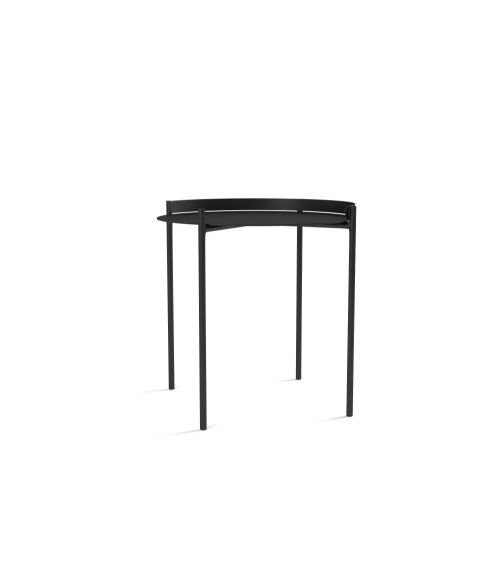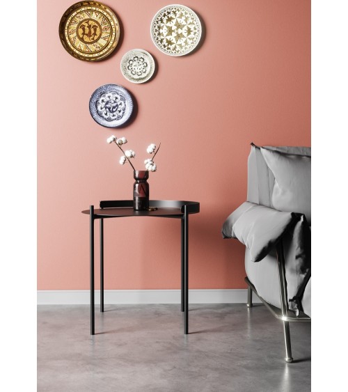 Table dappoint ronde Thelma en métal noirAvec son piètement fin et élégant et son rebord en demi-lune, la table dappoint Thelma en métal noir a tout dune grande. Belle et utile, elle vous accordera toutes les faveurs, en créant un effet saisissant : à côté de votre canapé, en chevet branché, en desserte au pied de votre fauteuil préféré. En un mot, dans toutes les pièces qui réclament une touche de style. Pour une note loft ou contemporaine, aucun doute, réservez cette petite table basse en métal?noir !DimensionsHauteur : 45 cmDiamètre : 42,5 cmDivine Thelma, la table dappoint réinventéeLa table dappoint design Thelma sadresse aux amoureux des notes stylées. Observez sa silhouette, vous reconnaîtrez lhéritage de la très connue table dappoint de salon Louis XIV cerclée de cuivre. Une pièce iconique revisitée ici dans une remarquable expression de modernité?! La structure en métal de cette table dappoint basse noire, appuyée par lélégance filaire du piètement, rappelle évidemment le loft. Elle trouve légitimement sa place dans ce style épuré qui aime la symbiose entre lancien et le nouveau. Le contemporain lui va aussi à merveille, grâce aux lignes à la fois simples et sophistiquées et aux courbes inattendues.Petite table dappoint Thelma, la touche déco qui fait la différenceAdopter la table dappoint en métal Thelma?? Pari gagnant si vous avez envie dun intérieur moderne et élégant?! Son allure choc vous tend la perche pour lutiliser comme un élément de déco à part entière. Elle sera formidable, placée de façon symétrique en bout de canapé, ou bien en vue, agrémentée dun vase élancé ou dune lampe décorative. La table dappoint Thelma offre un petit volume qui peut se faufiler dans toutes les pièces de la maison. Son impact visuel est pourtant percutant. Belle, mais pas seulement, elle vous sera utile pour montrer votre magnifique aloe vera, déposer votre verre, votre bouquin du moment ou votre portable.