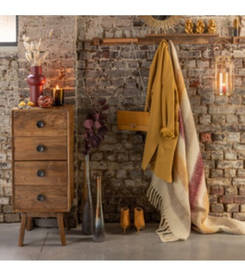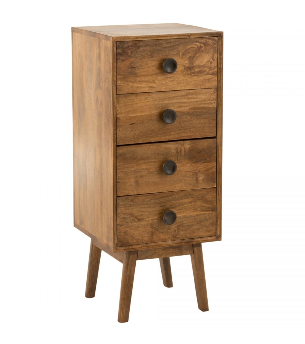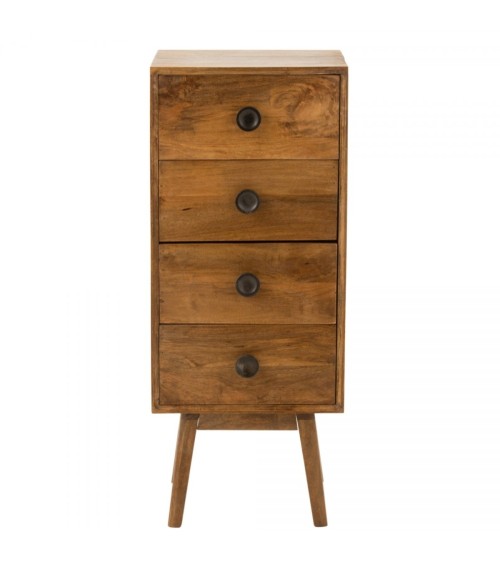 Meublez votre espace avec la commode tendance LORA et faites y entrer comme un vent de pureté... Son style art déco, très tendance en ce moment fera beaucoup parler ! Celle-ci fera de votre chambre un espace à l'atmosphère cocooning, idéal pour passer de jolies nuits... LORA est conçue en bois de qualité, c'est ce qu'il lui procure un style au top ! En plus de cela, elle est d'une robustesse inégalable. Dans les mêmes tons, vous aimerez aussi le console en bois et cannage 3 tiroirs SABLA. Au niveau de l'entretien, nous vous préconisons d'utiliser un chiffon humide. Dimensions :Hauteur : 91.5 cmLargeur : 40 cmProfondeur : 40 cmBon à savoir :Essence de bois : ManguierEntretien : chiffon humidifiéFinition du métal : AcierMatière(s) principale(s) : Bois (manguier) + métalMatière(s) des pieds : Bois (manguier)Montage : Montage rapideNombre de tiroirs : 4Style : Vintage